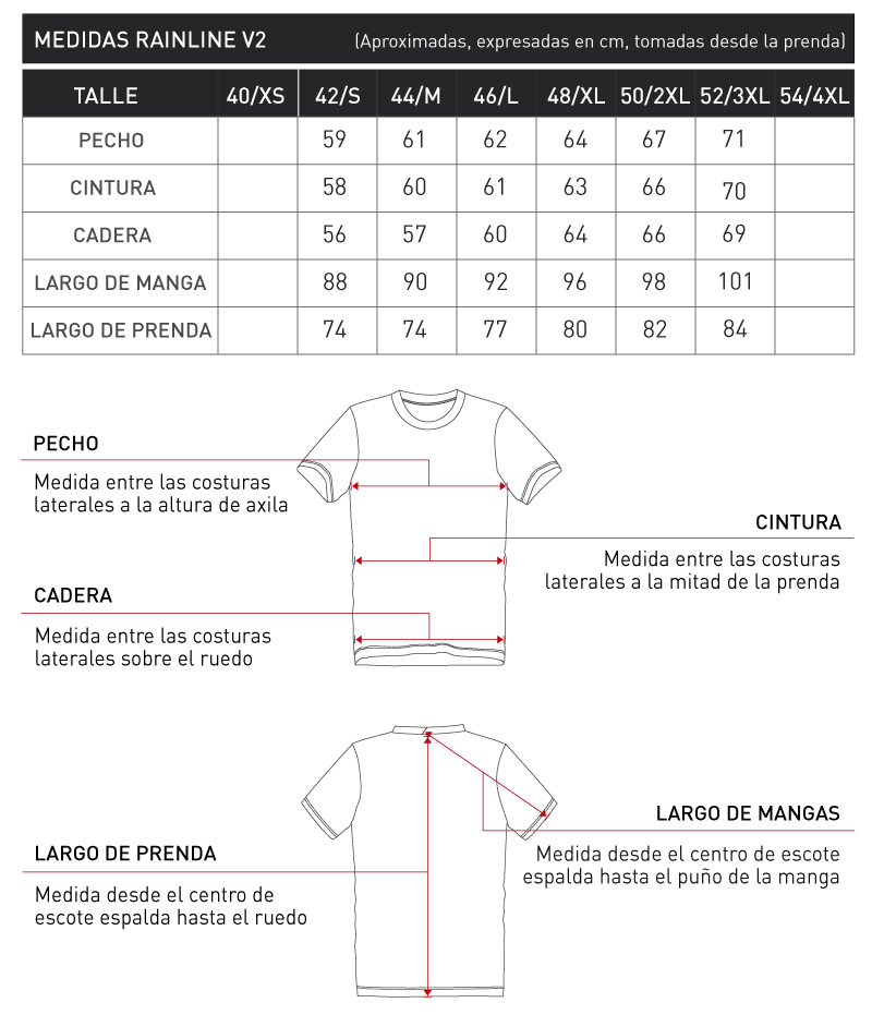 FUNCIÓNResistente al viento y al agua (2000 mm). Respirable, portando máxima transpirabilidad, evitando el sobrecalentamiento corporal y permitiendo la salida de vapor de humedad con facilidad. Costuras termoselladas, que evitan que penetren la lluvia y el viento.